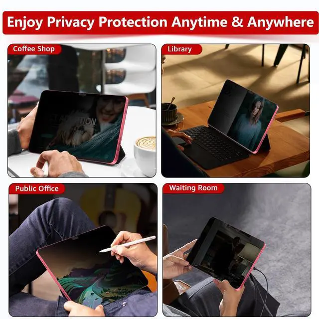 Attention: This is not compatible with iPad Air 11 M3 2025 / M2 2024, iPad Pro 11 2024, iPad Pro 11 (2022 & 2021 & 2020 & 2018) and iPad Air 5th & Air 4th Generation( 10.9 inch), it is only applicable in the horizontal direction and doesn't have an anti-peeping function in the vertical direction ^^