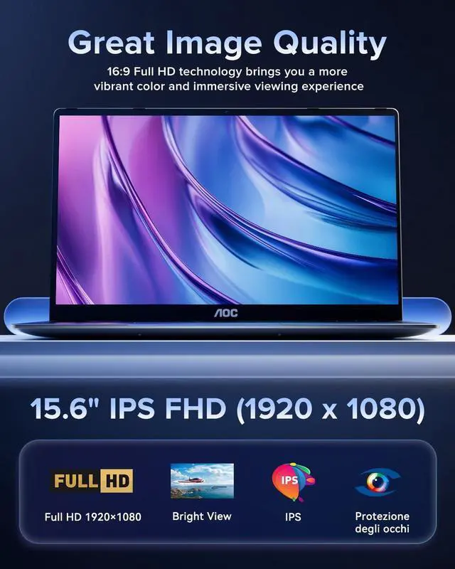 It also features WiFi5 and Bluetooth 5.0 capabilities, with this connectivity-rich laptop PC. it empowers you to connect seamlessly with various devices and transfer data swiftly. Enhance your Quality of life and productivity. ^^ 15.6" FHD IPS SCREENThis AOC Laptops come with 15.6" 1080P FHD IPS screen, 16: 9 ratio and FHD resolution ensures sharp Word and detailed imagery. 4MM ultra-narrow bezel and 90% screen-to-body expands scree, displaying more content, providing a comfortable visual experience and higher efficiency in browsing web pages or documents! making it ideal for multimedia consumption,, video editing, student and content creation.