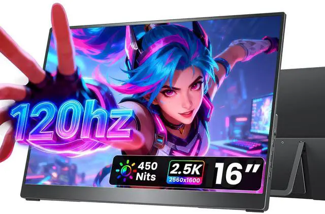 Aspect Ratio: The Cocopar 16" portable monitor delivers a sharp 25601600 2.5K resolution with a versatile 16:10 aspect ratio. Perfectly compatible with 16:9 gaming consoles like PS5, Xbox no stretching or black bars. Enjoy sharper text, detailed images, and vibrant visuals for work, streaming, content creation, and gaming. Ideal as a high-quality USB-C portable monitor for professionals and gamers on the go ^^ Ultra-Lightweight & Travel-Ready (Only 1.5 lb): Weighing just 1.5 lb and only 0.2 inches at its slimmest point, this ultra-slim 16" portable monitor is ideal for travelers, remote workers, students, and digital nomads. It comes with a premium protective fabric sleeve, keeping your display safe and easy to carry anywhere. Perfect for on-the-go productivity, gaming, or as a secondary laptop screen ^^ 120Hz Ultra-Smooth Refresh & High