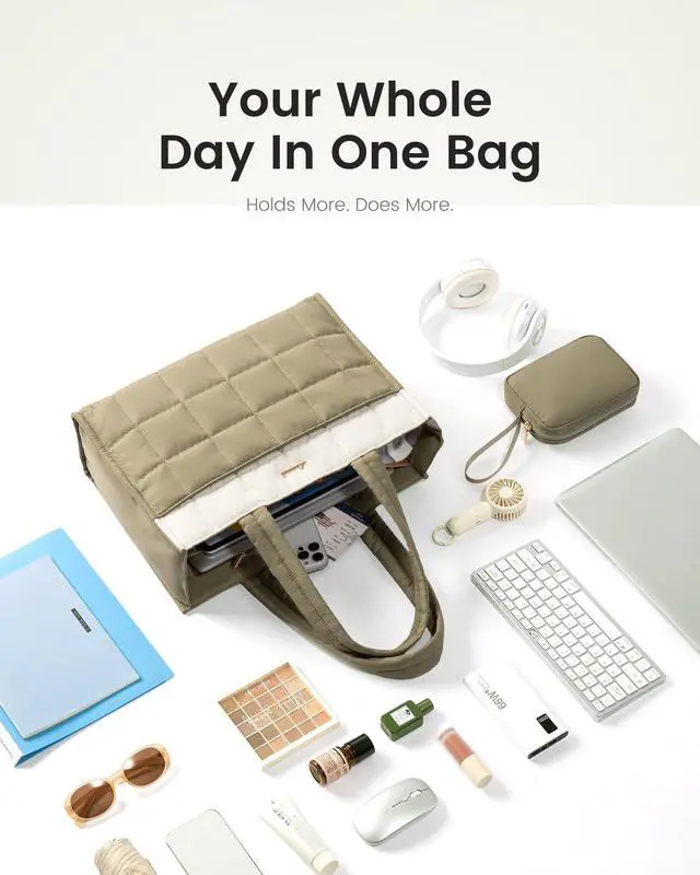 Commute Without the BurdenWeighs just 1.3 lbs! Say goodbye to heavy bagsover 50% lighter than traditional leather laptop totes! This ultra-light tote is your go-to for commuting, work, errands, or travel. ^^ Always Polished & Professional Its frame structure ensures it stands upright, even when emptyno slouching! Maintain a polished look at all times. The wide rectangular opening offers clear visibilitysee & grab anything in seconds! ^^ 35L Spacious & Organized Holds everything you need and more! Features 12 dedicated pockets, including a padded laptop compartment (fits up to 17.3" )