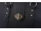 This rolling bag features gold color hardware plus a lovely center pendant.