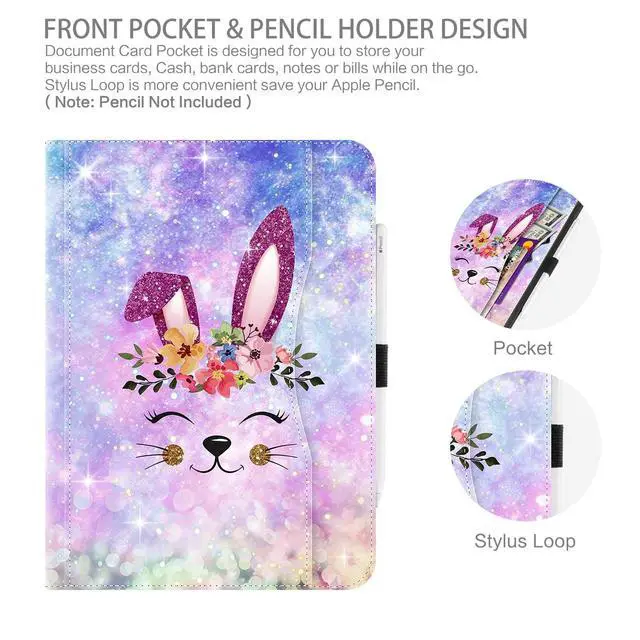 Number: A3354 / A3355 / A3356)Premium MaterialCase for iPad 10th Generation is Made of reinforced external PU leather dual layer construction and soft internal microfiber lining to give you 360 full protectionSmart Auto Sleep/ WakeCase for iPad 10th Gen instantly wakes up tablet when opened, and makes it go to sleep once closed (extend battery life). Upgraded Anti-slip StripesWith three anti-slip stripes, you can adjust it to multiple stable angles, holding up great for viewing, video watching and reading at home, or presenting at your meeting. Hand StrapBuilt-in hand strap, coupled with an elastic band to keep the case OPEN, give you a comfortable single-hand use experienceExternal Elastic BandWhen you don't use it, strap help you more firmer to fix your tablet. Do not have to worry about loss and loose. Front Document PocketDocument Pocket is designed for you to store your business cards, Cash, bank cards, notes or bills while on the go. Pencil HolderStylus Loop is more convenient save your Pencil.