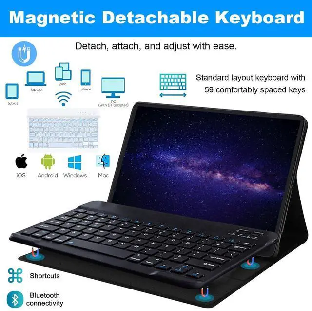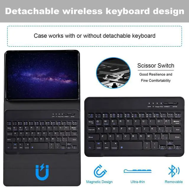 Magnetically Detachable Keyboard: Our for fire tablet 10 case for kids women boy girl man with keyboard is magnetic so it can be easily repositioned or removed from the case. Equipped with useful shortcut keys and compatible with IOS, Windows, and Android systems, provide you with ultimate convenience. 5. With the latest Bluetooth technology, you can connect up to 10 meters, with faster connection speed and more stable signal. How to Pair a Tablet/Phone with a Keyboard Bluetooth? 1. Turn on the keyboard (need to full charge at first). 2. Press the "Connect" button to 3 seconds, the blue light blinks. 3. Open the Bluetooth from settings in your ipad and find the Bluetooth keyboard, then click and connect (Password free connection).