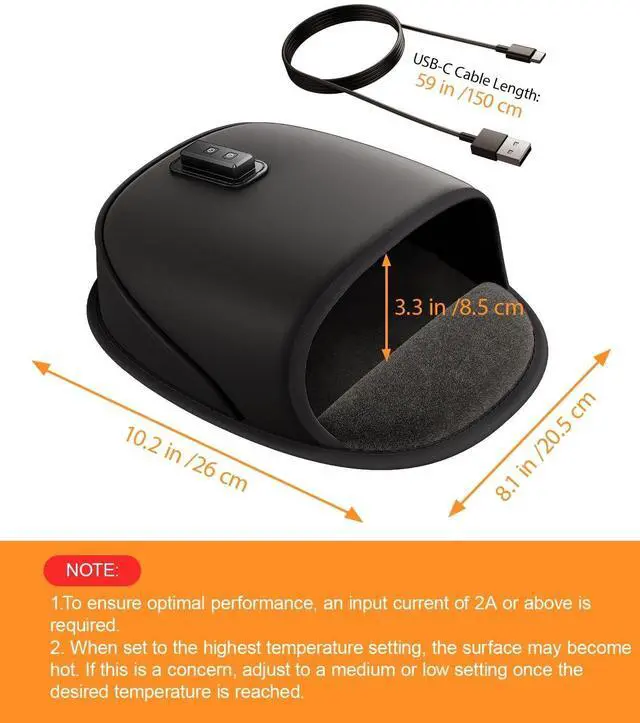 NOTE: To ensure optimal performance, the input power should reach 5V 2A. (Not suitable for computer USB ports. It is recommended to use a 10W or higher power charger. ) When set to the highest temperature setting, the surface may become hot. If this is a concern, adjust to a medium or low setting once the desired temperature is reached. The heating temperature at the bottom of the desk hand warmer is lower than that at the top. This difference in heating effect is designed for safety considerations. ^^ [ Upgraded Dual-Sided Heating for All-Around Warmth ] -- Unlike ordinary heated mouse pads that only warm from the top, Nauttxon features an innovative dual-sided heating design. With a heating sheet on top and conductive wires below, our heated mouse pad creates an upward circulation of heat, evenly enveloping your hands and banishing cold fingertips. ^^ [ 3 Temperature & Timer Settings for Customized Comfort ] -- Choose from three precise temperature levels113F, 131F, and 149F, our usb heated mouse pad matchs your preferred warmth without the risk of overheating. The built-in timer offers 2 4 8-hour auto-shutoff for added safety and energy efficiency.