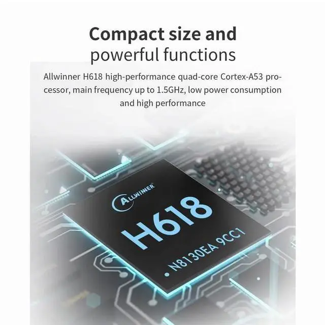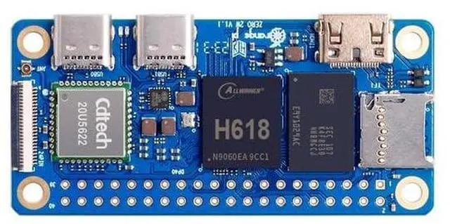 Orange Pi Zero 2W is powered by Allwinner H618 high-performance quad-core Cortex-A53 processor with up to 1.5GH z, integrated Mali G31 MP2 graphics processor, supporting OpenGL ES 1.0 / 2.0 / 3.2, OpenCL 2.0, Vulkan 1.1. It has 1GB / 1.5GB / 2GB /4GB LPDDR4 memory specification options, supports 16MB SPI Flash, has Wi-Fi5, BT 5.0, with BLE support. Orange Pi Zero 2W can be extended with USB 2.0, 100M Ethernet, IR receiver, audio output, TV-out, power button, etc. via 24Pin connector with adapter board.