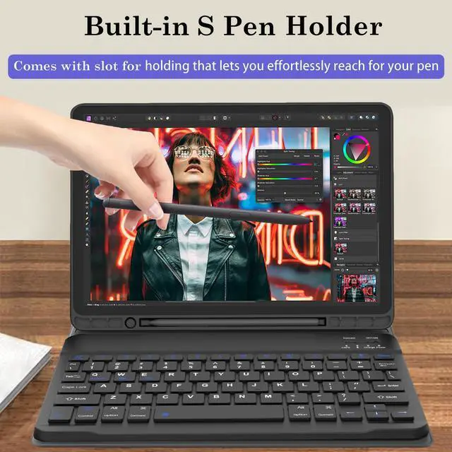 The galaxy tab s10 plus keyboard case comes with power-saving mode, long periods of non-use will enter the hibernation state. ^^ Built-in S Pen Holder & Support Wireless Charging for S PenSamsung galaxy s10 plus case with S Pen slot for daily storage, never worry about get lost. The other side also support S Pen wireless charging, no need to take off the case. ^^ Auto Sleep/Wake Function & Precise Cutout CaseThe Samsung galaxy tab s9 fe+ 5g case with keyboard automatically locks or unlocks your screen when the lid is opened or closed in CASE ONLY mode to conserve battery life and keep all the important things you may be working on safe.