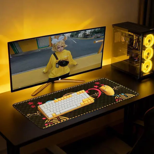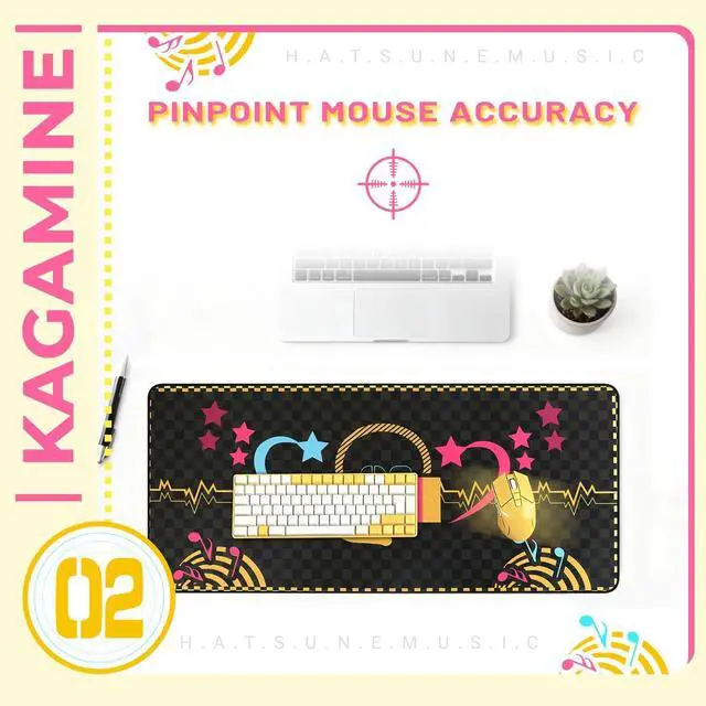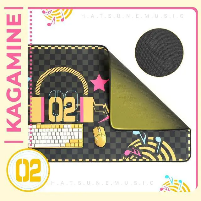 Kagamine Rin & Len-ThemedZGTMSZ mouse pad has an original design, getting inspiration from Kagamine Rin & Len's iconic colors. With a striking "02" logo, it presents a unique, stylish, and dynamic anime look. This mouse pad stands out, perfect for fans of the virtual pair. Get it now! ^^ Premium Quality MaterialCrafted from high-grade, durable materials, this mouse pad ensures long-lasting use. The smooth surface allows for precise mouse movements, enhancing your gaming or working efficiency. ^^ XL Gaming-Ready DimensionGenerous 35.4" x 15.7" size accommodates full-size keyboards and mice, ideal for competitive gaming or ergonomic workspace setups.