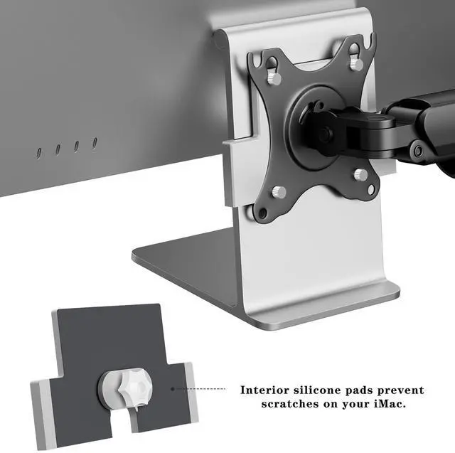 Protective silicone pads are integrated throughout the adapter creating a soft buffer between the metal and your iMac to prevent scratches and damage during installation and use. Reclaim your desk space achieve the perfect viewing angle and unlock the full potential of your iMac with this professional-grade mounting solution.