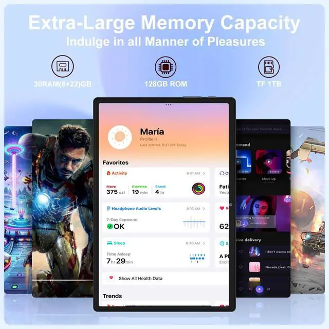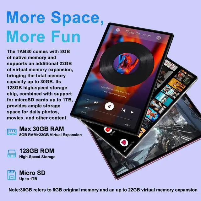 Generous Storage: This Android tablet offers 30GB RAM (8GB+22GB virtual)+ 128GB ROM (expandable up to 1TB), ensuring fast app launches and smooth operation. Pre-installed Google Play allows easy downloading of essential apps ^^ HD IPS Display +