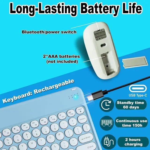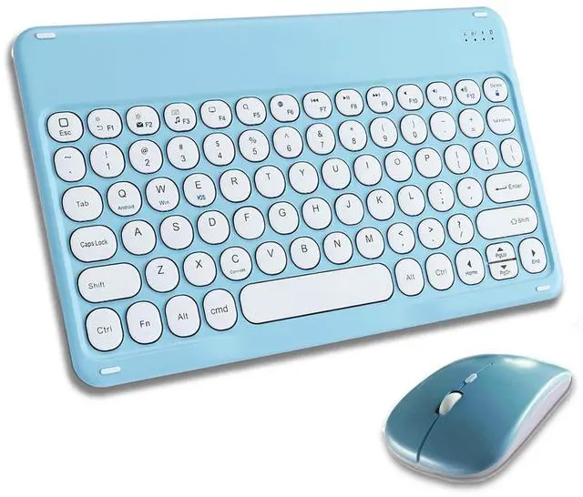 Wireless Bluetooth Keyboard and Mouse Set, Round Keys Cordless Rechargeable 10Ultra Slim Cordless 1200DPI Portable Keyboard and Mice Combo for Windows/iOS/Android/PC/Laptop/iPad (Blue)