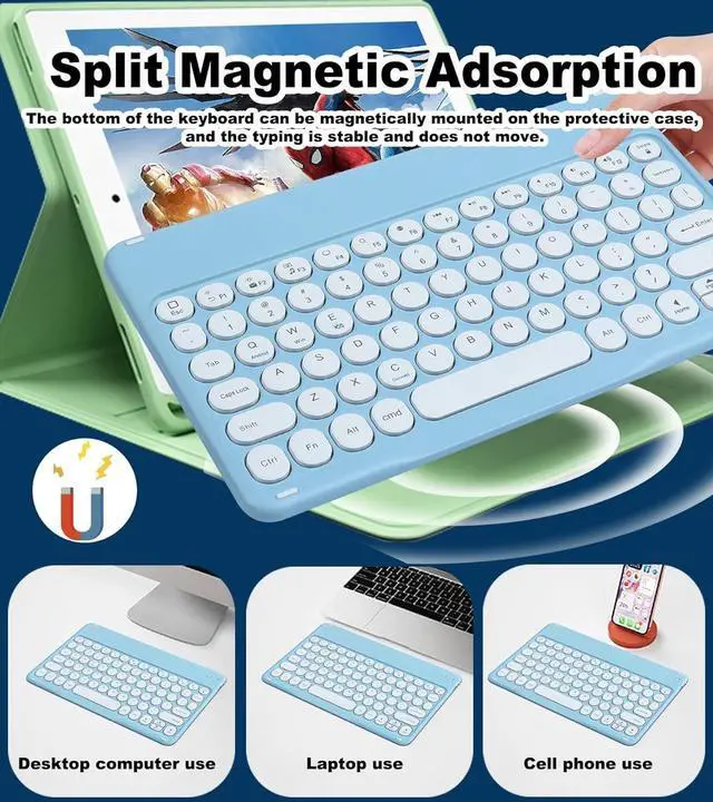 • Ultra-Slim and Portable DesignThe wireless keyboard is only 0.6cm thick,and the size is 9.72 X 5.9 X 0.19inches, saving space and making it easy to carry. The bottom of the keyboard can be magnetically installed on a protective cover, which will not easily move, allowing you to type with confidence. Also, the wireless mouses design conforms your palm arch, providing more comfort.