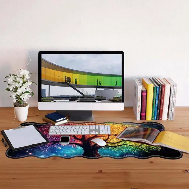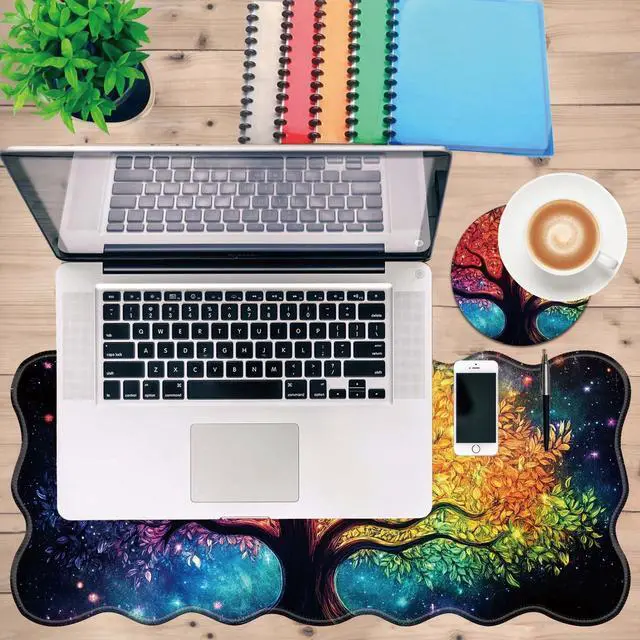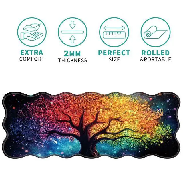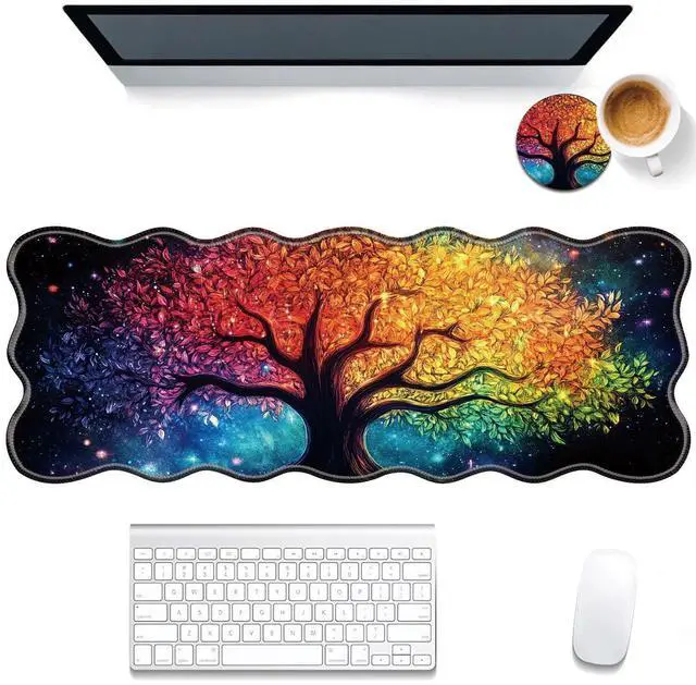 DHEEBFWE Large Gaming Mouse Pad for Desk, 31.5x11.8in, Irregular Wavy Stitched Edges, XL Mousepad with Anti-Skid Rubber Base, Keyboard and Mouse Mat, Office Desk Writing Pad,Tree of Life