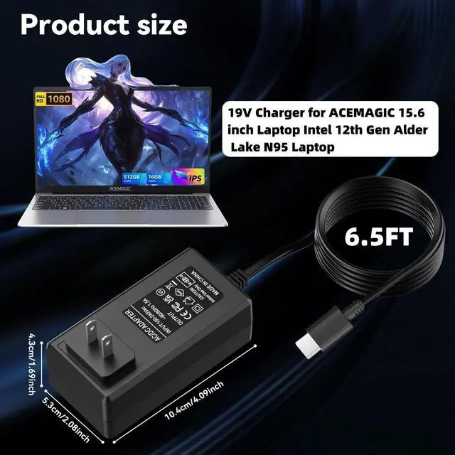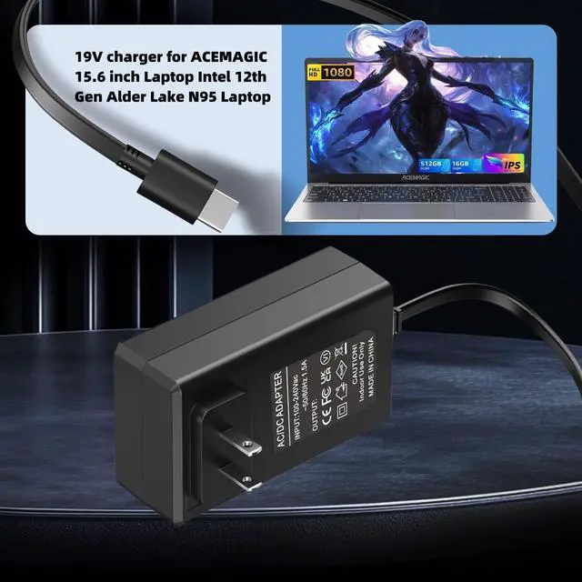 19V Charger Compatible Modelsfor ACEMAGIC AX15 Intel 15.6 inch 12th Alder Lake N95 Laptop ACEMAGIC AX16 Pro AX16PRO 16.1 inch AMD Ryzen 7 5700U Laptop ACEMAGIC & AOC Collaborate on AX15 Intel Alder Lake N97 15.6" Laptop