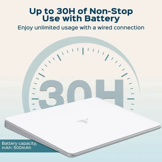 ^^ Bluetooth touchpad with high precision, gesture recognition, 500mAh lithium rechargeable battery, non-slip pads, lightweight 153g build, 30H battery life, and seamless USB Type-C connectivity. ^^ Touchpad laptop accessory offering wireless/wired flexibility, connection to 3 devices, 30H battery life, portability, smooth gestures, precise control, and reliable performance for work or study.