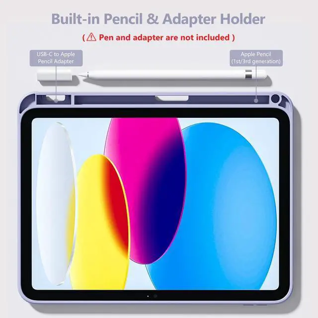 Numbers: A2696/A2575/A2777) NOT compatible with any other devices. To ensure that you have purchased the correct case, please verify the model number "AXXX" in small print on the back bottom of your device ^^ Build-in Pencil & Adapter HolderThis case has a slot for Pencil 3rd/1st generation and the USB-C to Pencil Adapter. You can carry your pen and adapter with your device wherever you go without worrying about losing them. It's also easy to remove the Pencil and adapter from the port (Pencil & Adapter is NOT included) ^^ Precise Cutouts & Full ProtectionDurable PU leather exterior and soft microfiber interior prevent your new 10th gen from being scratched. Hard PC back shell with a flexible TPU frame protects your tablet from drops and impacts. Precise cutouts allow access to all ports and buttons, raised edges enhance screen and camera protection ^^ Crystal Hard PC BackshellTransparent hard back cover shows off the original beauty of the device and your engraving. You can stick favorite stickers to personalize your case ^^ Trifold Stand CoverFeaturing a tri-fold design, the case stands at the perfect angle for typing and viewing, convenient for daily life and work like watching TV, reading, documents editing, etc.