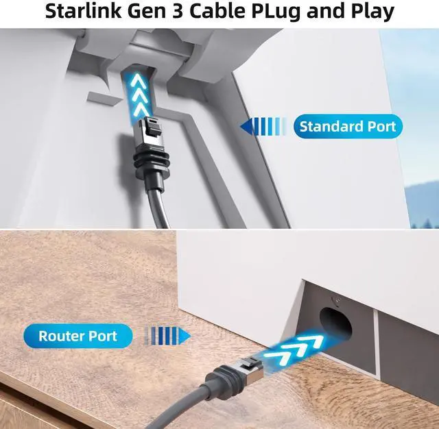 Optimized Starlink Cable for Starlink V3Starlink cable gen 3 is designed to replace the Standard cable. It is specially designed for the Starlink Rectangular Satellite V3, This replacement cable for Gen 3, has perfectly compatible, super flexible length whether you want to use it at home or outdoors, it can meet your needs. ^^ Reliable Connectivity & High Speed TransmissionFONKEN starlink Gen 3 cable with the With the latest RJ45 connectors, made of high-quality 26AWG single-core copper, durable construction for stable network supply. The data transfer speeds of up to 2000Mbps, provides streaming without lag.