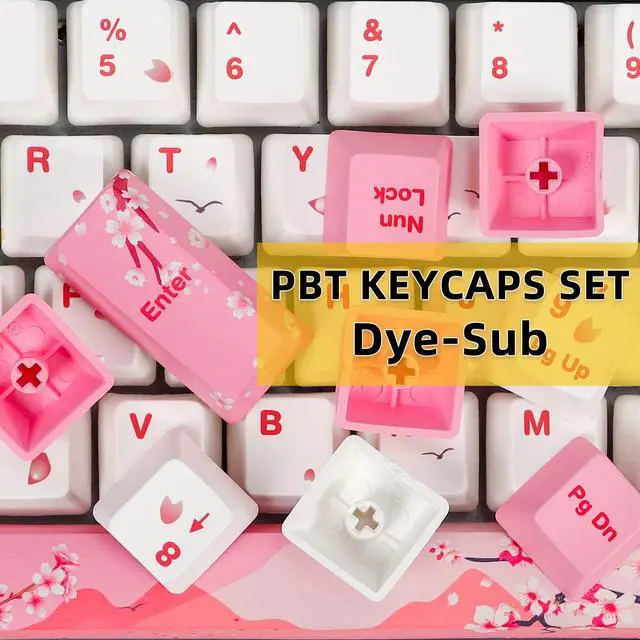 Switch Compatibility Standardized MX compatible with most MX switches. e. g. Cherry MX switches and clones including Gateron, Halo, and Kaihua ^^ PBT Dye Sublimation Made of high-quality PBT material, with a matter of texture and anti-grease coating. And the legend is dye sublimation which is fade-resistant, These keycaps provide top-notch durability and a great feel for your typing, less prone to grime buildup. ^^ OEM Profile This keycap set is OEM profile which is a little higher than Cherry profile, The curved layout will bring you a comfortable typing experience, even if you use it for a long time, you will not feel tired.