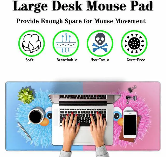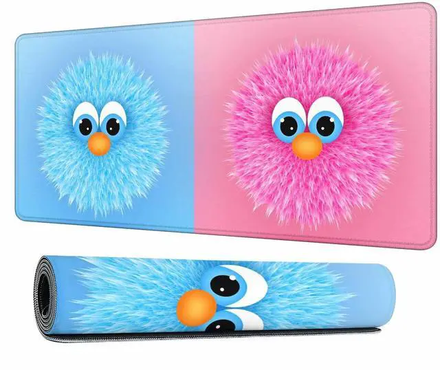 Y YIHANGBEST Cute Fuzzy Cartoon Characters Gaming Mouse Pad Blue Pink Kawaii Animal Designs Large Full Desk Keyboard Mousepad for Computer,Home,Office 35.4"X15.7"
