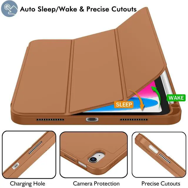 iMieet Case for iPad (A16)/iPad 10th Generation [11-Inch 2025/10.9 Inch 2022], Trifold Stand Smart Cover with Pencil Holder and Soft TPU Back, Supports Touch ID(Brown)