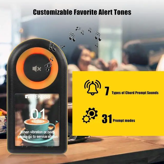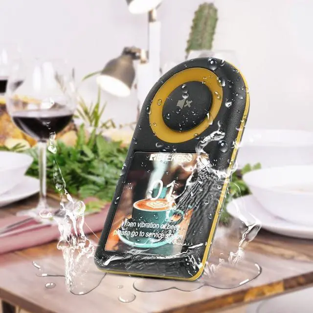 7 Types of ringtones, 31 Prompt modes; beautiful chord alert tones for customer pager system; create a unique atmosphere; provide an engaging interactive experience; leave a more profound impression on customers ^^ Stable signal within 500m; restaurant vibrating pagers with stable signal; no need to worry about losing connection with customers due to signal dropout; ensures continuous service and customer satisfaction ^^ Pager IP55 waterproof; food beepers water depth of 1M place; soak for 30 minutes; take out will not be damaged; reduce the trouble of accidentally falling into the water damage ^^ One piece of mute; after the customer receives the call; the customer can choose the one-touch switch-off button; reduce the disturbance to the customer; improve the customer's waiting experience ^^