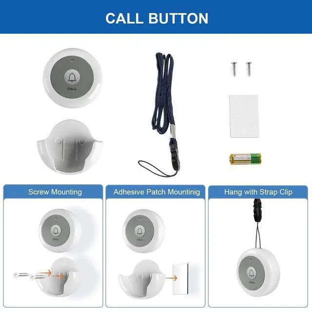^^ CONVERTIBLE FEATURE: Each call button comes with a mounting bracket that allows it to fix to a wall at bedside/in bathroom or affix to most smooth and clean surfaces with adhesive tapes/screws provided. Attach with the lanyard provided to wear around the neck as a pendant. ^^