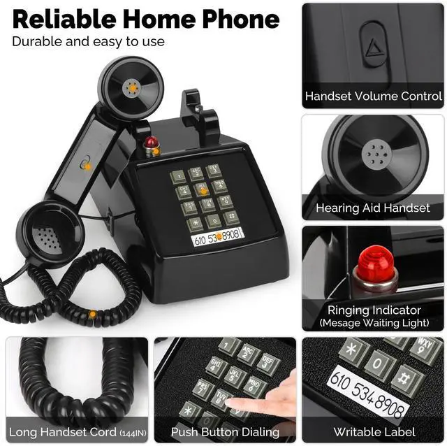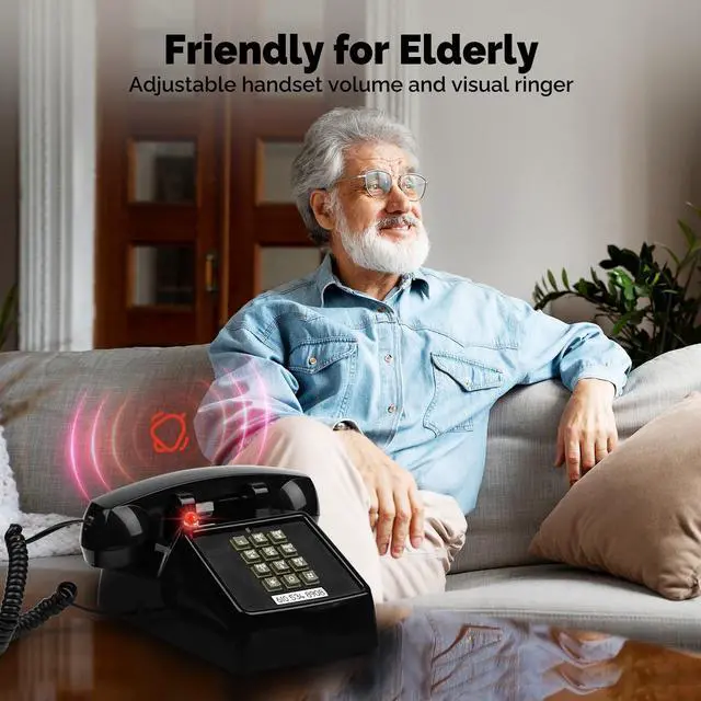 Senior-Friendly Phone: This old-fashioned corded desk phone has a classic design, large buttons, and a hearing-compatible handset, making it perfect for seniors who struggle with hearing or aren't comfortable with cell phones. Its an ideal gift for grandparents and parents ^^