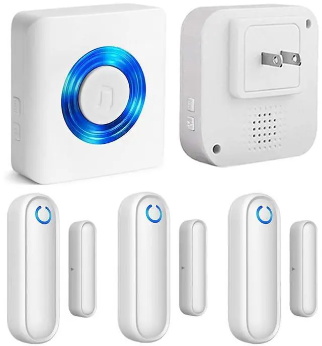 ^^ Easy installation: Plug and Play, Plug the Receiver into an standard Outlet, tear the double-side adhesive tape of the Door / Window sensor and stick them to any door or window. ^^ Customize and Expandable. Each receiver can work with 20 door window magnetic sensors, each transmitter can pair with 20pcs receivers and set to different or same music.