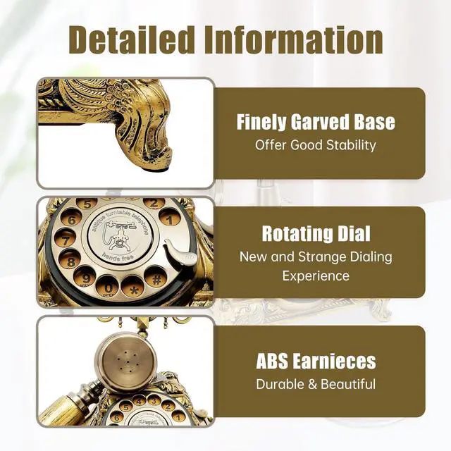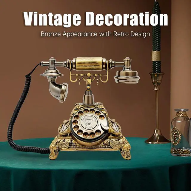 Add a touch of 1950s elegance and rock-solid functionalityto any space. Hand-cast eco-friendly resin, a gleaming zinc-alloy cradle, and a carved base create a striking bronze showpiece, while line-powered circuitry with a fiberglass board delivers crystal-clear, battery-free calls. From everyday conversations to vintage-themed decor, this rotary phone pairs nostalgia with modern reliability. Key Features Plug & Play Calling: Dual FSK/DTMF compatibility and the included RJ-11 cord let you dial instantlyno batteries, apps, or wall power needed.