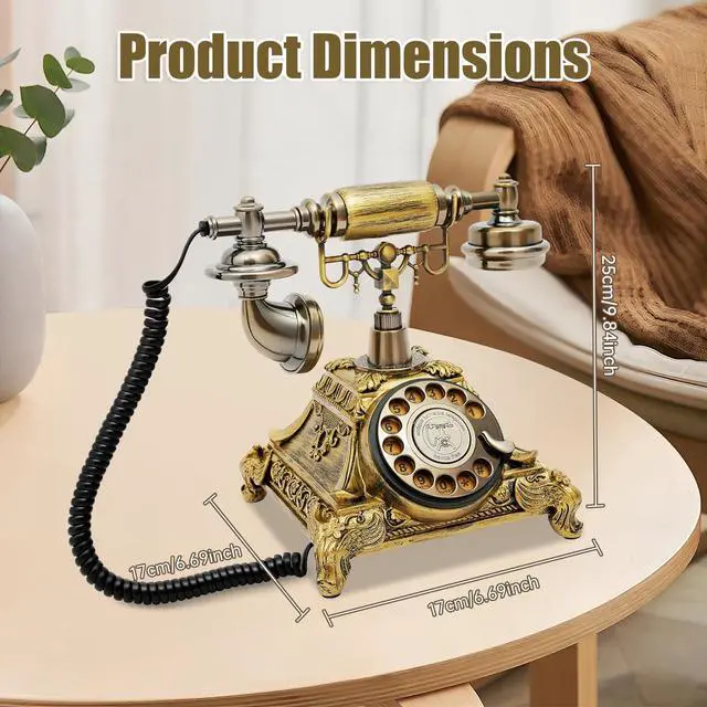 Dimensions: 10 in (L) 6.9 in (W) 8 in (H) Package Contents1 Vintage Rotary Telephone1 RJ-11 Telephone Line1 Resin Base (pre-assembled)1 Zinc-Alloy Bracket1 Screw1 User Manual (English & Chinese)Notes Read the manual thoroughly before installation and use. Purchase a compatible adapter if your outlet is not RJ-11. Minor color variations and 0.1 in measurement tolerances are normal due to manual finishing. Final TouchRediscover the joy of rotary dialingno batteries, no chargingjust timeless style and crystal-clear sound. Add this bronze masterpiece to your cart today and let every ring echo classic charm throughout your space.