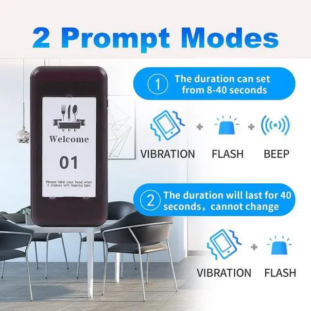 Customer Focused: With loud, visible alerts, the pagers effectively notify customers when their meal is ready, eliminating the need for queuing and enhancing their dining experience., Suitable for a variety of environments such as restaurants, food courts, hotels, hospitals, churches, inventory management and kitchen carts.