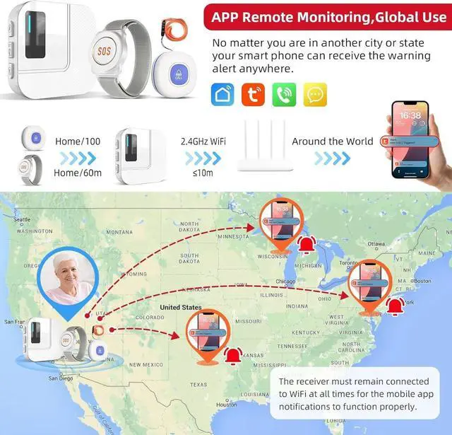 EASY TO CARRY: The wrist call button is designed for seniors and fits comfortably on the wrist, making it easy to ask for help at any time. The wrist call button is a personal wearable alarm button that can be used for any emergency, such as the elderly fall ^^