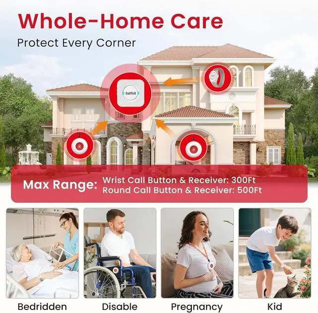 EASY TO PUSH: The wrist call button has a large dial that makes it easy to press the call button easily. Even seniors with limited mobility can easily press the wrist call button and press the call button in case of an emergency ^^