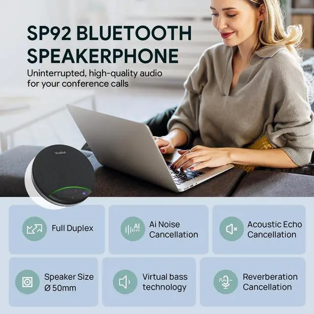 Crystal-Clear Conference Calls: Advanced AI algorithms filter 1000+ background noises in real-time, ensuring your microphone and speaker deliver crisp audioideal for busy PC workspaces or open offices. ^^ Virtual Bass for Premium AudioA large 50mm driver powers this bluetooth conference speaker, while virtual bass balances music and conference call clarity. Perfect as computer speakers with microphone for hybrid teams. ^^ Full-duplex Microphone with