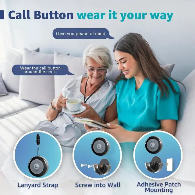 AND FLEXIBLE: This caregiver pager system is capable to pair up to 255 call buttons/call bells. Each call button comes with a 23A 12V battery. Flexible attachment methods, use lanyard provided to hang on neck or place adhesive tape/screws provided to fix on wall. Function as medical alert system for the elderly care or service as paging system in hospitality. Makes calling for service super easy. ^^