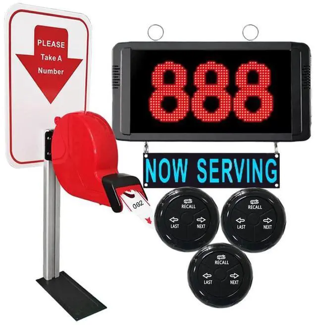 Package Includes: 1 x Host display3 x Call Button1 x Power adaptor1 x Ticket Dispenser Stand1 x Remote Control1 x