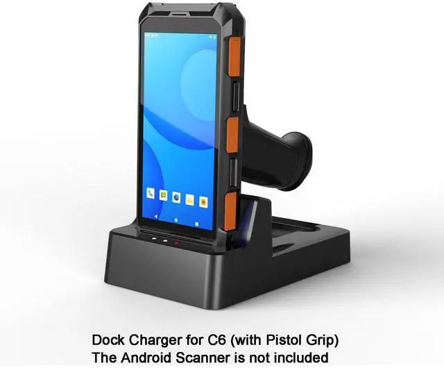 Single-slot dock cradle for C6 with pistol grip. For recharging only.
