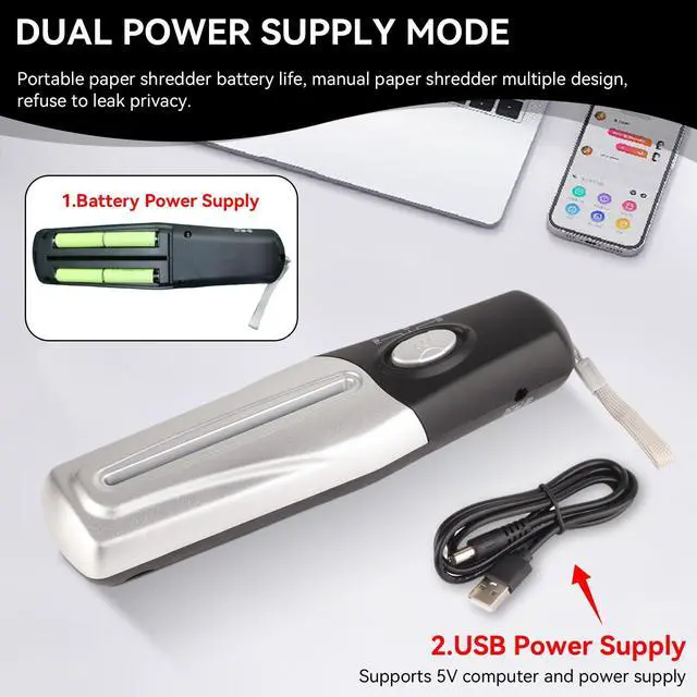 ^^ USB POWER SUPPLY: Portable paper shredder battery life, manual paper shredder multiple design, refuse to leak privacy.