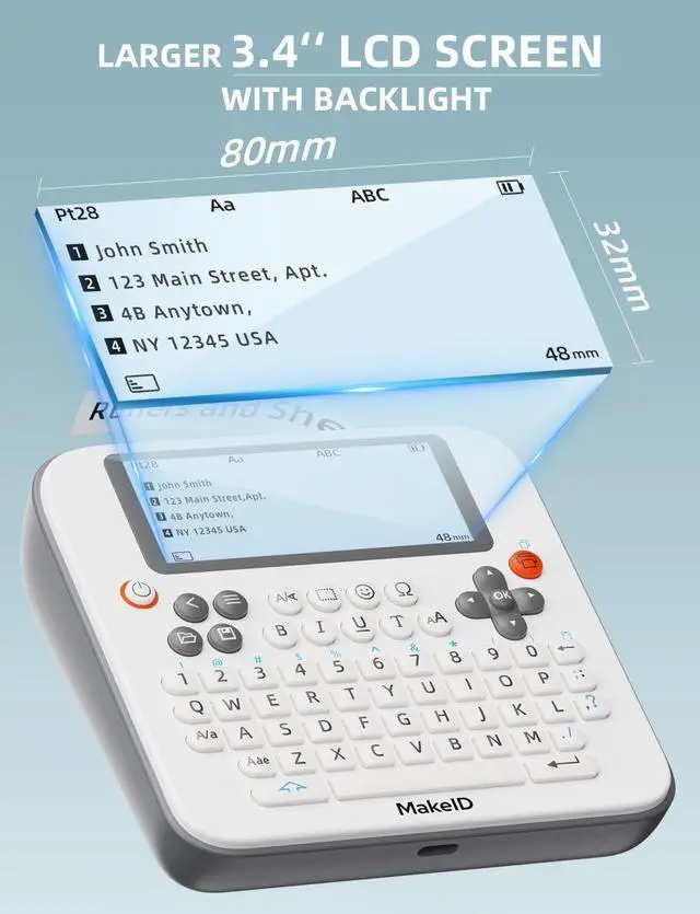User-Friendly Design: the large 3.4" LCD display with 4-line backlight ensures easy reading. With a margin of 1mm and a minimum print length of just 13mm, our label printer maximizes label usage ^^ Print Labels in