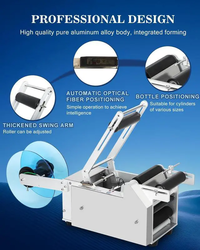 ^^ LABEL BOTTLE REQUIREMENTS: Please note that this labeling machine is only applicable to a complete cylinder, the bottle body should not be uneven or curved, the cap should not protrude, and the label color should not be gold, silver or transparent;