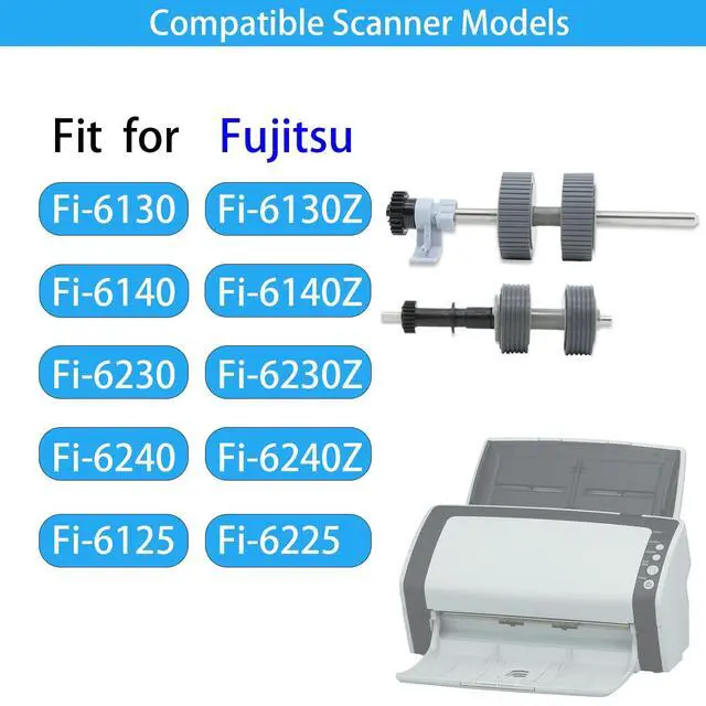 Quality Upgrade The 2023 upgraded Brake Roller with Shaft has been upgraded, using a more corrosion-resistant metal shaft and gigh quality rubber wheels and more environmentally friendly ABS plasticlonger life, beyond the OEM quality, but cheaper. ^^ Parts NumbersThe brake roller with shaft Parts Numbers PA03540-0001 PA03540-0002. ^^ Compatible Scanner Models Perfectly compatible with Fujitsu Fi-6130 Fi-6130Z Fi-6140 Fi-6140Z Fi-6230 Fi-6230Z Fi-6240 Fi-6240Z Fi-6125 Fi-6225 etc.
