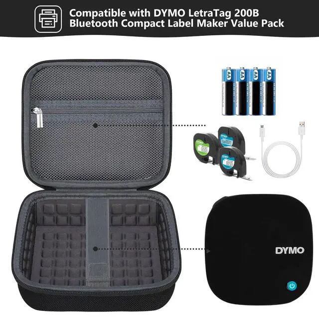 PERFECT FIT: This compact label maker sturdy cases specially designed for DYMO LetraTag 200B Bluetooth Compact Label Maker and Label Maker Tape. Perfectly compatible with DYMO LetraTag 200B kit. For sale is CASE ONLY! ( Label Maker and accessories are not included).