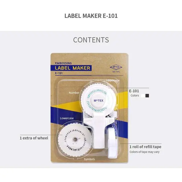 Motex Embossing Label Maker, Labeling Tool, Old School Label Maker, for Manual Label Embossing -E-101 (2 Wheels, White)
