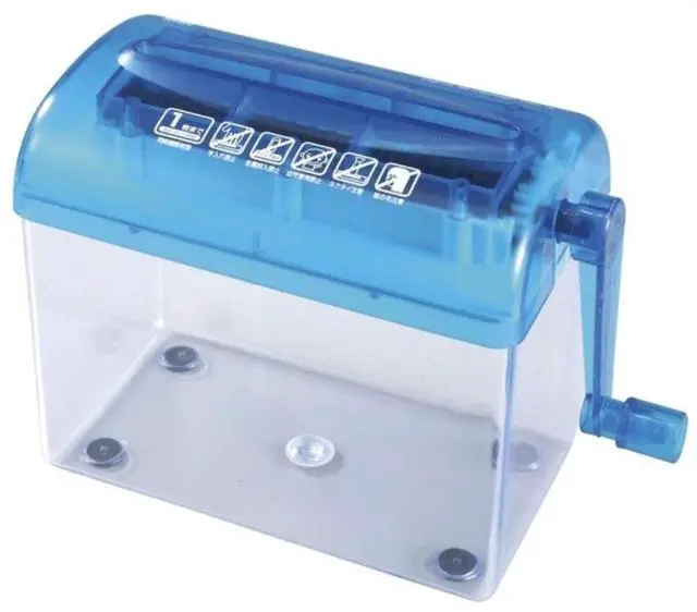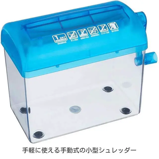 This is a small manually operated shredder that can be easily used. This 0.2 inch (4 mm) straight cut type is hard to see the character. Safe design to prevent fingers from entering the opening opening.