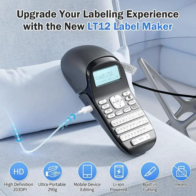 ^^ &: Utilizing the familiar QWERTY keyboard layout, typing on the LT12 Label Maker is a breeze compared to the "hunt peck" method required by some older models with non-standard layouts. Featuring a backlit large screen LCD display, our label maker ensures labels are easily previewed even in low-light conditions, enhancing visibility and accuracy.