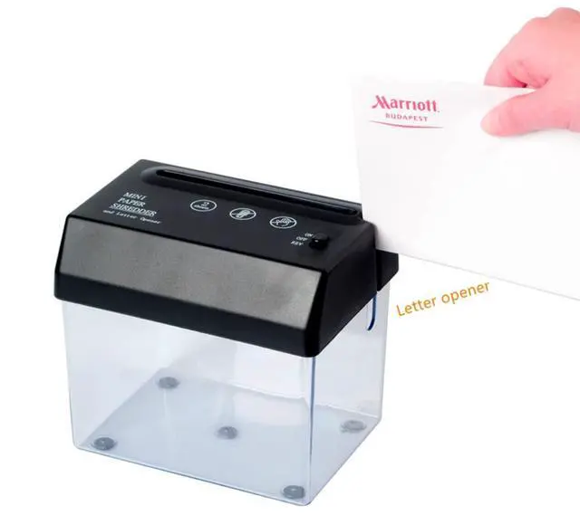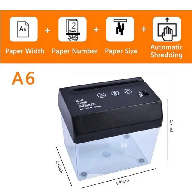 Paper Shredder&Letter Opener: The width of mini paper shredder inlet is 4.8" /12cm and the width of a torn paper is 0.12" /3mm which is suitable for A6 paper or folded A4 paper. The letter opener can help you tear the envelope easily ^^ USB &