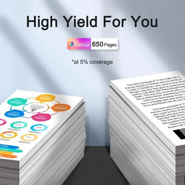 High Page Yield: Up to 650 pages per color5% coverage ^^