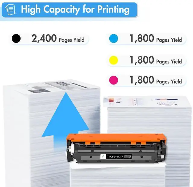Page Yield: 2, 400 pages for 131X CF210X black high yield toner and 1, 800 pages per color toner for CF211A CF212A CF213A toner cartridge at 5% coverage (Letter/A4) ^^