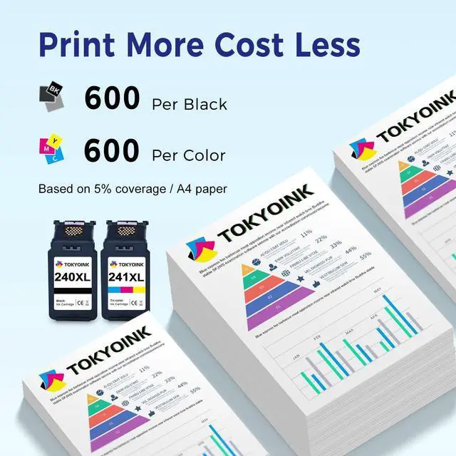 Printer High Page Yield: 630 pages per 240XL Black ink cartridge, 560 pages per 241XL Color cartridge. 1, 190 pages in total based on industry standard (5% coverage, A4 letter) PG-240XL black ink cartridge and CL-241XL color ink cartridge combo pack compatible for printer PIXMA MG3620 TS5120 MG3520 MX472 For mg3600 ink cartridges for Canon mg3620 ink cartridges