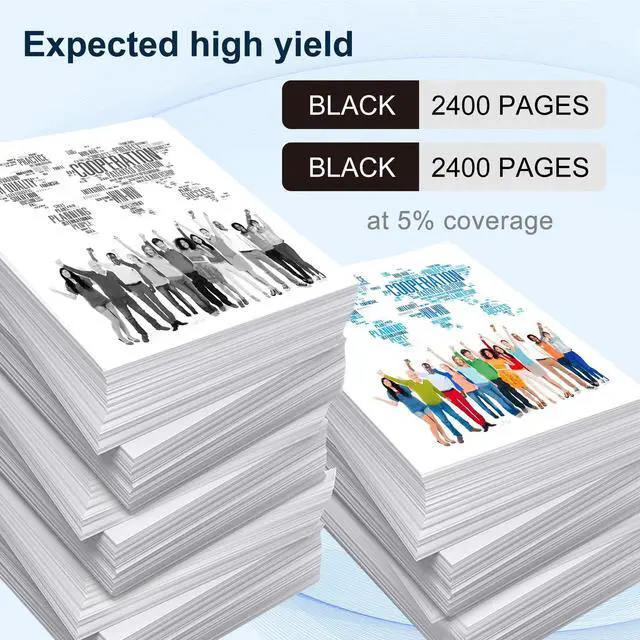 • Original quality: Up to 2400 pages per black toner cartridge (at 5% coverage may vary by type of use)