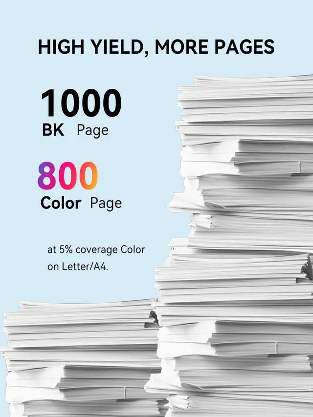 High yield: 1000 pages per 923e black ink cartridge, 800 pages per 923e color ink cartridge (A4 Letter, at 5% Coverage) ^^ Use PRINPUSE 923e ink cartridges to cost less but obtain equivalent printing performance to using original brand cartridges ^^ PRINPUSE is committed to ambient air quality. Our products are designed and tested the printing systems to meet eco-label emissions guidelines